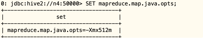 SET mapreduce.map.java.opts=-Xms800m -Xmx800m;