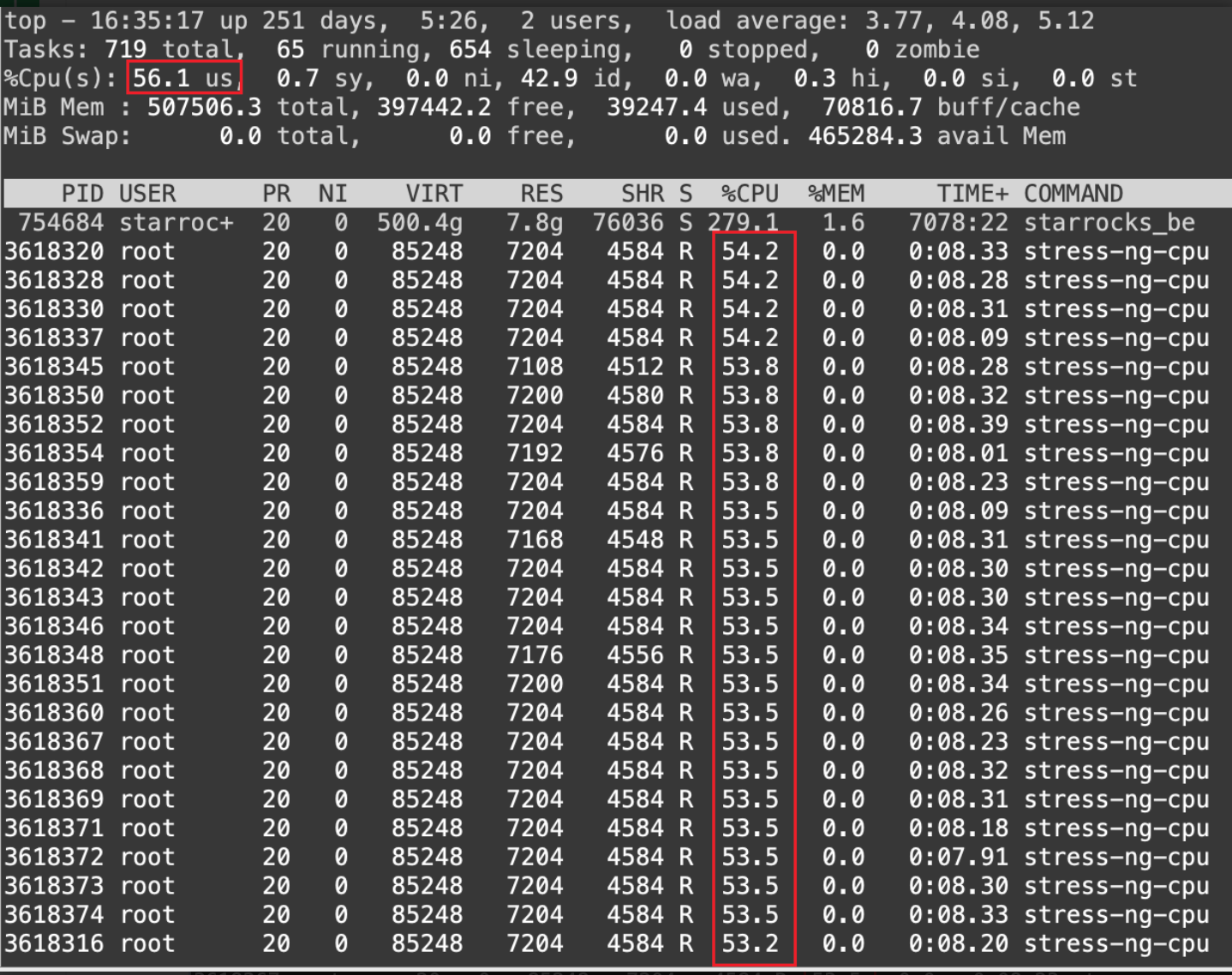 cgexec -g cpu:starrocks_cn stress-ng -c 64注:限制CPU使用率参数计算方式为